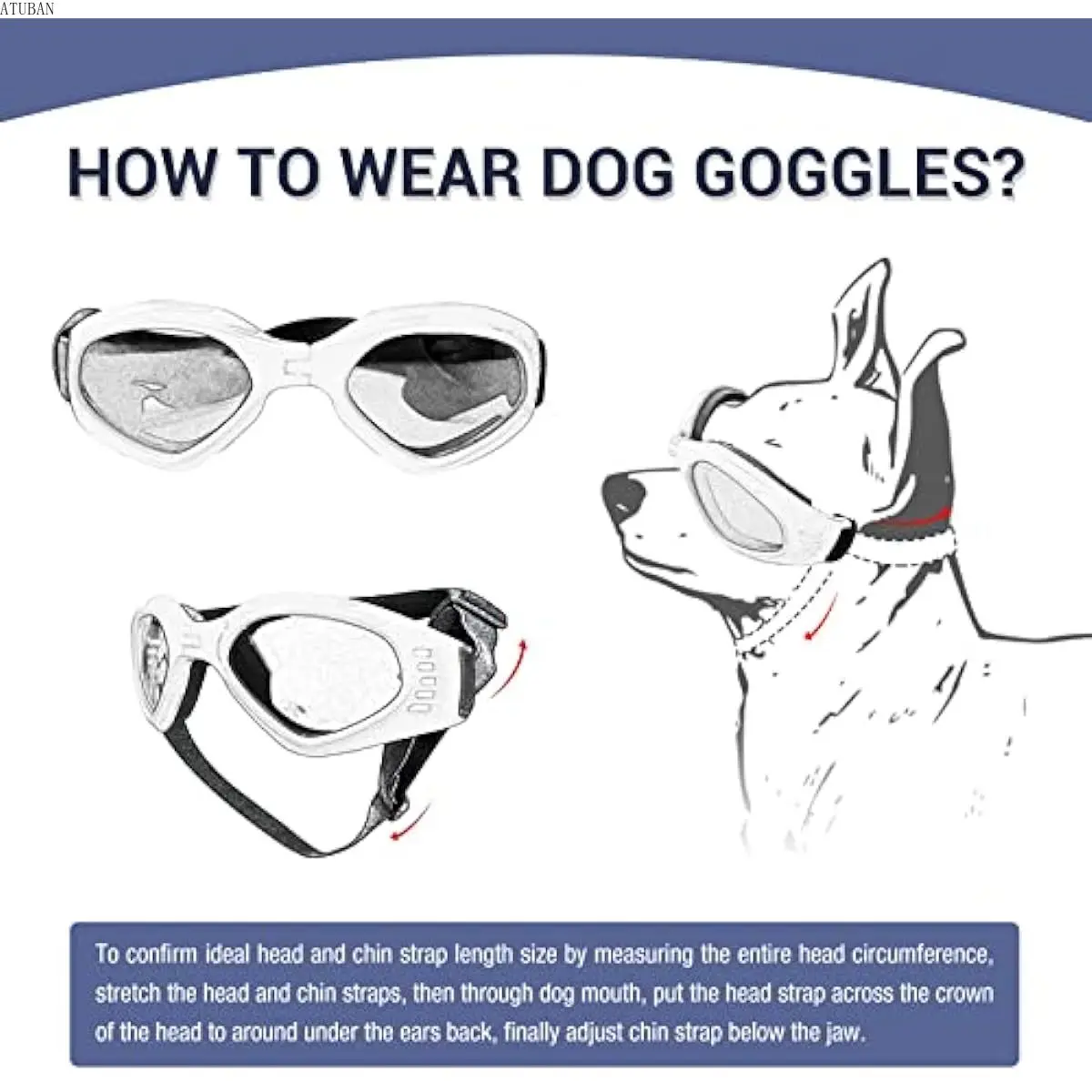 ATUBAN 중형 자외선 차단 조절식 보스턴 테리어 선글라스, 간편한 착용, 방풍 오토바이 개 안경