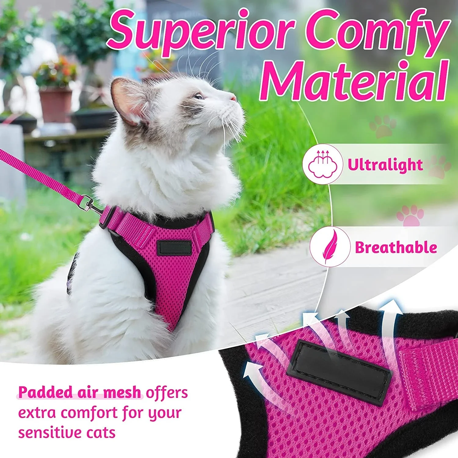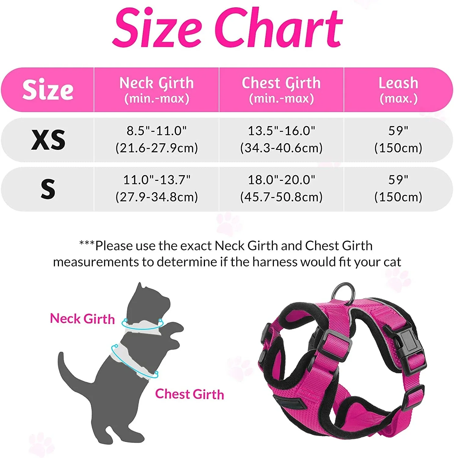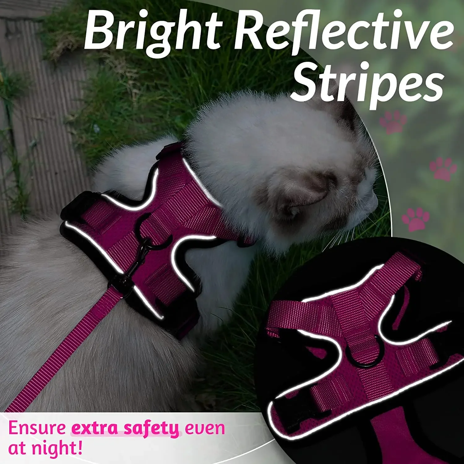 ATUBAN-고양이 하네스 및 가죽 끈 세트, 세련된 탈출 방지 고양이 조끼 하네스, 조절 가능한 통기성 애완 동물 반사 트림 포함