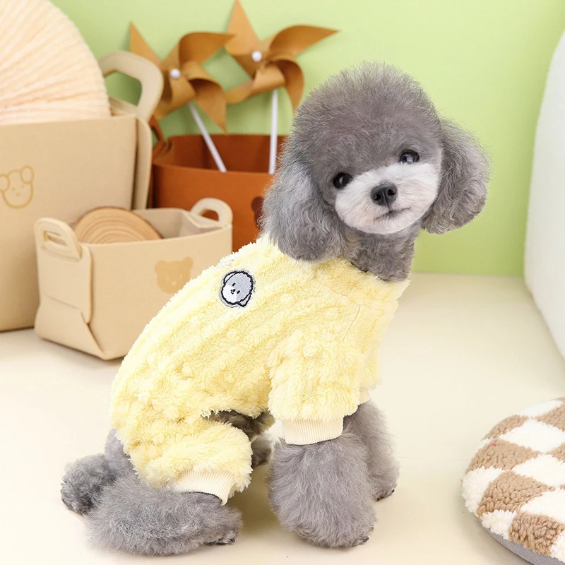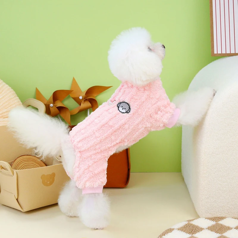 귀여운 강아지 점프수트, 작은 겨울 따뜻한 양털 고양이 의류, 작업복, 워킹 D 링, 치와와 슈나우저 잠옷